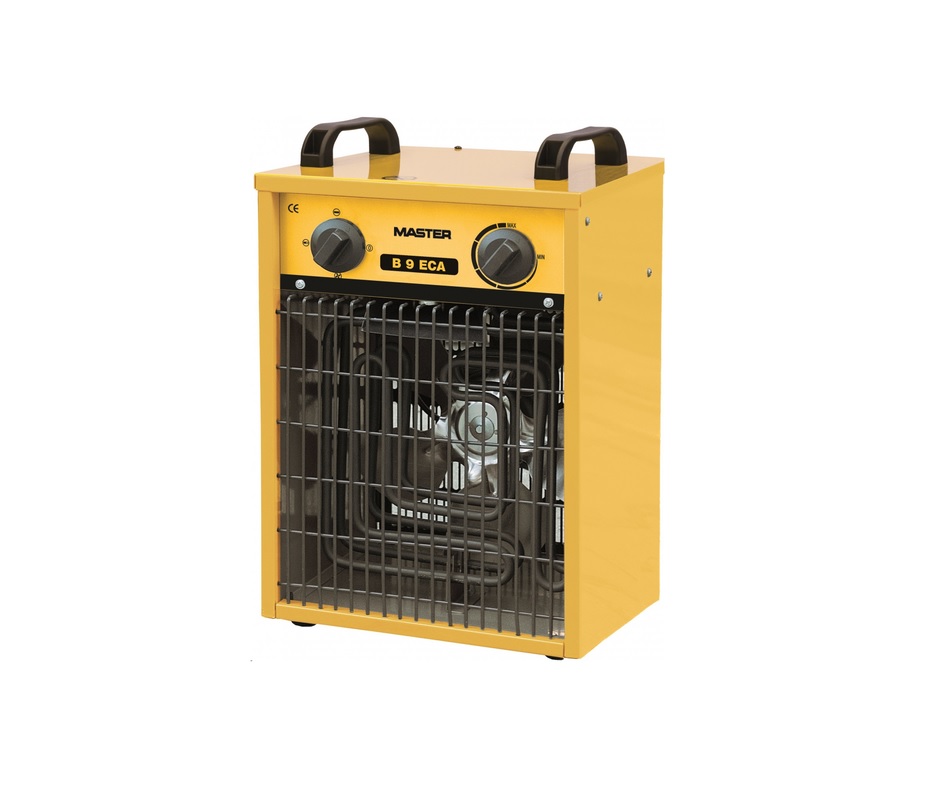 Master varmeblæser 9 kW, med indbygget rumtermostat, justerbart varme niveau, og så er den lugtfri, støjsvag og driftsikker.