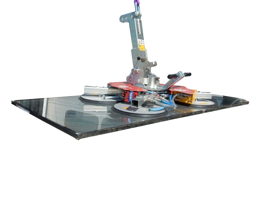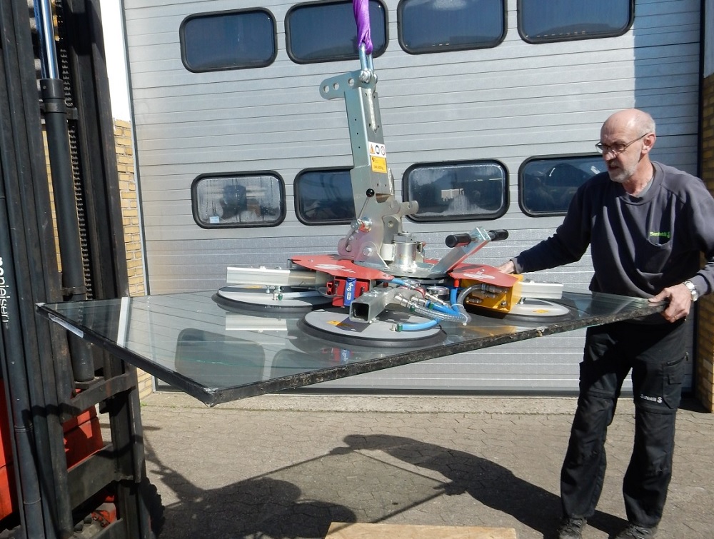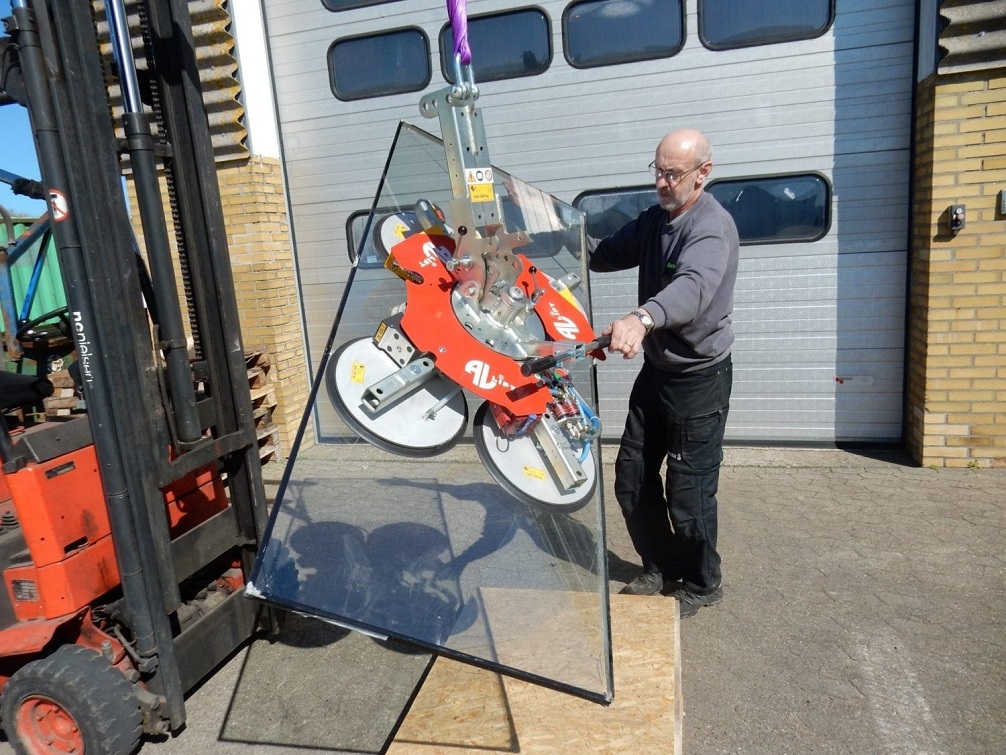 Batteridrevet vakummløfter/vinduesløfter som kan rotere 360° og vippe fra 0-90°, for let håndtering af glas m.v. op til 600 kg med fleksibelt løfteøje til ophæng i krankrog. Udstyret med en DC-vakuumpumpe, der drives af indbyggede batterier med høj kapacitet. Lavt energiforbrug med automatisk start/stop af vakuumpumpen. Styres nemt via et styrehåndtag, som er fastgjort på sugekoppen. Kan betjenes præcist og sikkert af én mand: Sug, løft og placer glas med mere i en arbejdsgang.