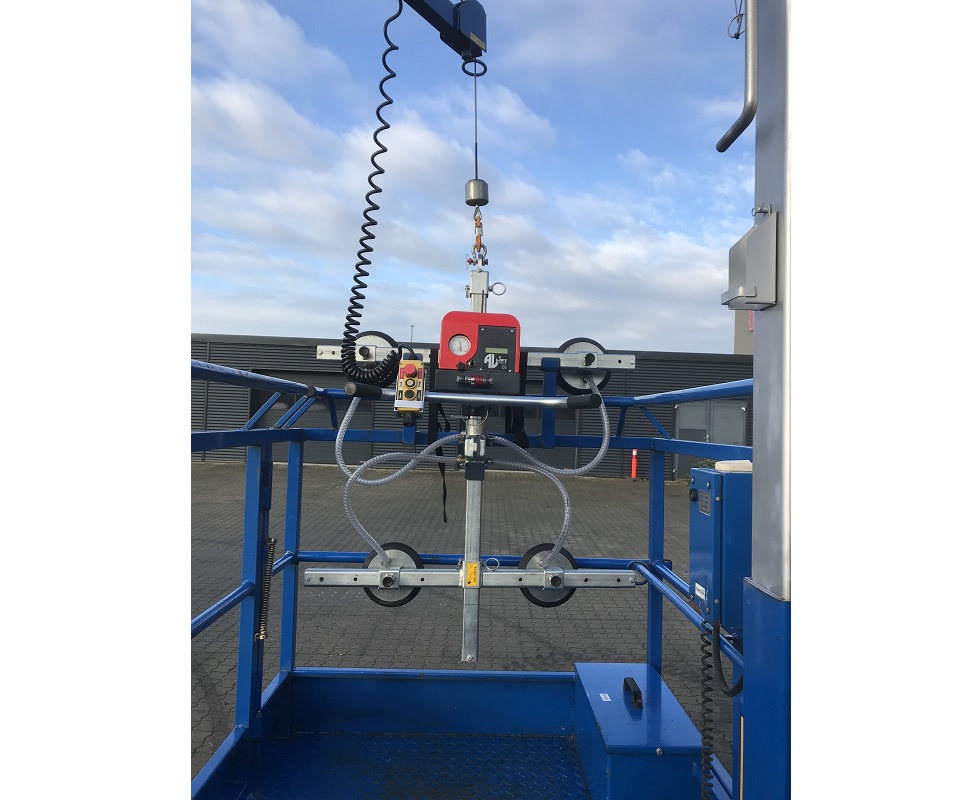 Mandskabskurv med minikran og batteridrevet vinduesløfter/vakuumløfter/sugekop, som bruges til montering af vinduer i højden. Kurven kan løfte 2 mand + 250 kg, eller 450 kg samlet. Kurven monteres på en teleskoplæsser, som herefter løfter kurv med mandskab samt evt. vindue, op til det ønskede sted.