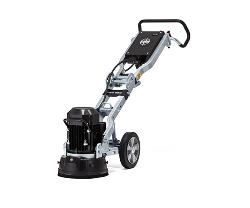 Betonsliber, ideel til slibning, afgratning og afkantning af ujævnheder i beton. Vi anbefaler at man lejer en støvsuger sammen med sliberen. Det er muligt at tage en del af beskyttelses-skærmen af sliberen, så du kan komme helt ind til muren og slibe.