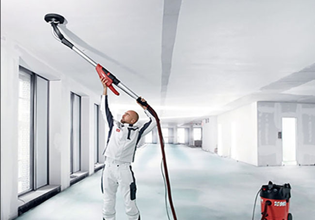Super effektiv girafsliber fra FLEX, udført med ergonomi og effektivitet i tankerne. Maskinen er perfekt til den profesionelle maler eller gør det selv mand som ønsker sig en effektiv og pålidelig maskine. Hurtigt og effektiv slibning af sandspartlede vægge og lofter. Vi anbefaler at man sammen med maskinen lejer en støvsuger, så undgår du støv over det hele og letter rengøringen efterfølgende. Derudover er maskinen udstyret med en automatisk hastigheds kontrol der sikrer ensartet slibehastighed, samt mulighed for at justere hastigheden på slibehovedet.