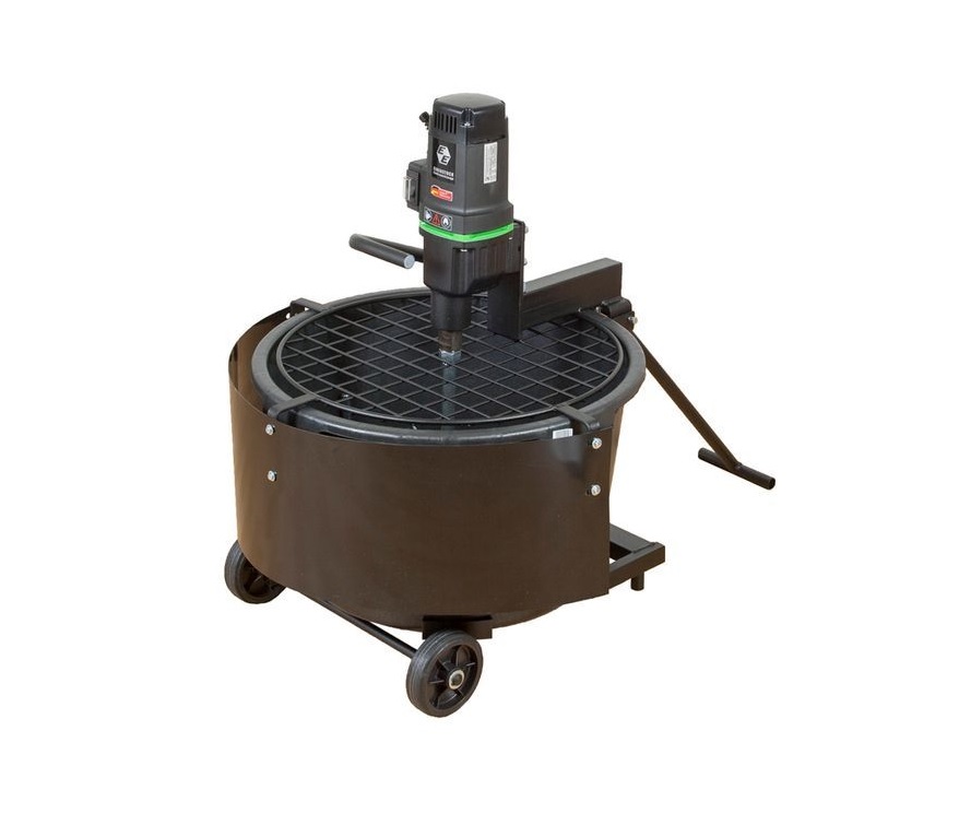 Universal og kraftig baljemixer med en motor på 1.500 Watt og høj drejningsmoment. Blander alle slags materialer uafhængigt af viskositet. Udstyret med en 65 liters balje og beskyttelsesgitter og baljeholderen sørger den for, at baljen ikke drejer rundt. Let at transportere med trækstang og hjulsæt.