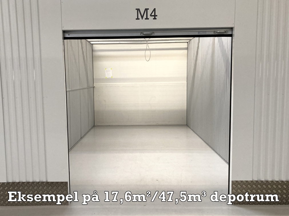 Vores store depotrum/bokse er 10 - 17,6 m² (27 - 47,5 m³), ved større pladsbehov, f.eks. møbler mm. fra mellemstore og større boliger.