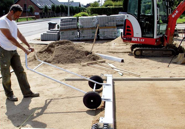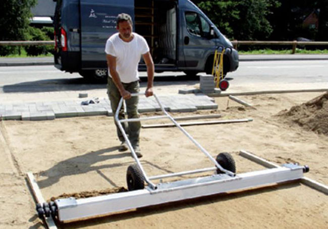 Værktøj til afretning af sand og grus ved nedlægning af fliser og belægnings sten. Få inspiration af billederne herunder, og du er altid velkommen til af kontakte os og høre nærmere.