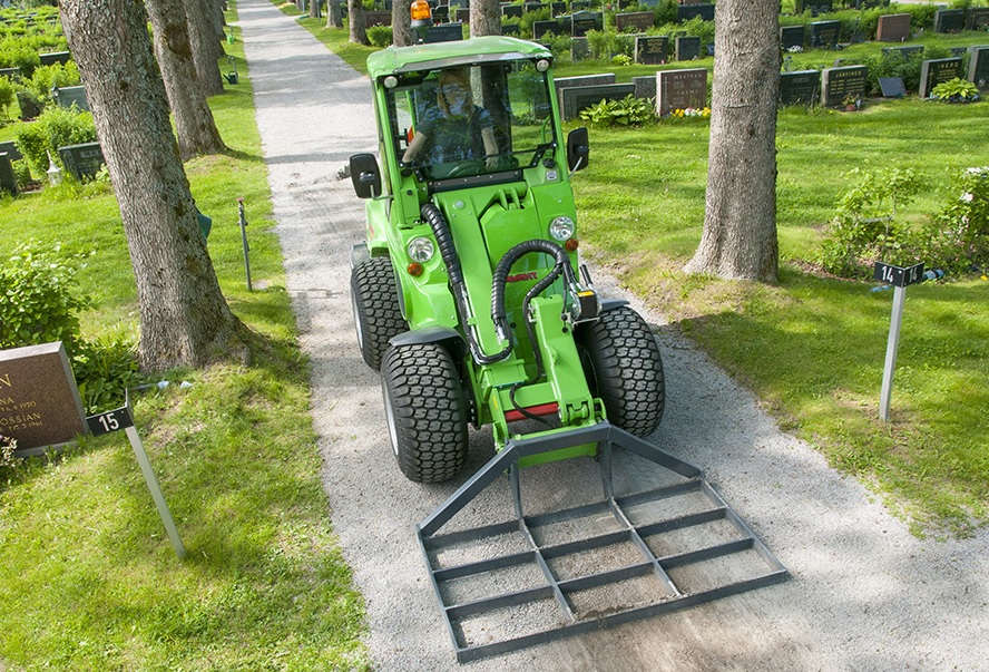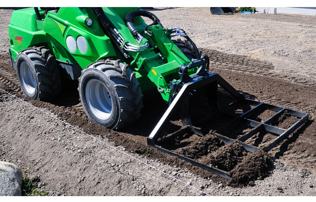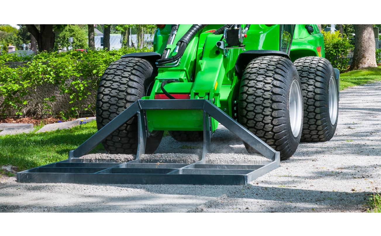 Afretter/planeringsaggregat til Avant minilæsser, er et simpelt redskab til planering og afretning af jord og grus, samt niveauudligning af store arealer. Specielt velegnet til udjævning af gårdpladser, indkørsler og indledende planering før anlægning af græsplæne.