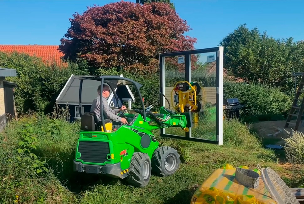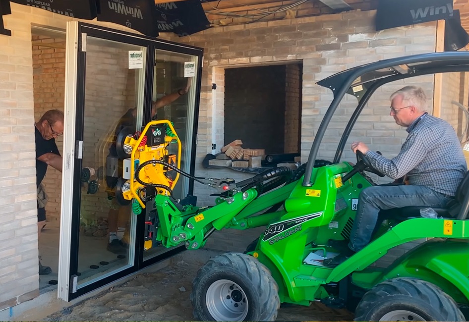 Vi har 2 forskellige modeller som kan monteres på minilæsseren. Avant vinduesløfteren har en løftekapacitet på 320 kg, og vinduesløfteren fra AL-lift har en løftekapacitet på 600 kg, så det er muligt at håndterer og monterer langt de fleste vinduer.