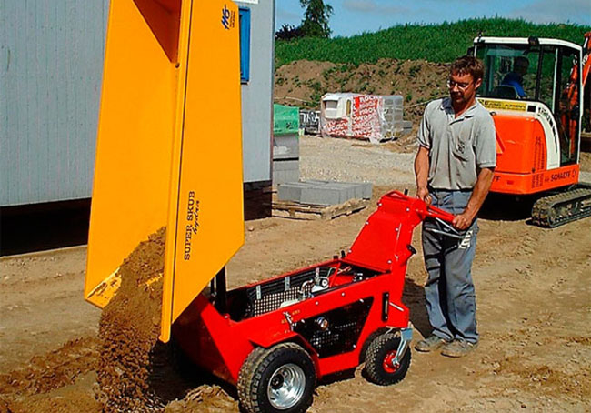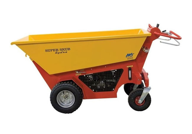 Denne EL-motortrillebøre/dumper, letter arbejdet og du undgår at belaste din krop, da den gør alt arbejdet for dig. Den har en lav læssehøjde på kun 93 cm, og kan bruges til at transportere tunge materialer, som sand, jord, beton, sten osv. Hvis du skal køre på din græsplæne og gerne vil undgå at ødelægge den, er det også muligt at leje køreplader hos os.