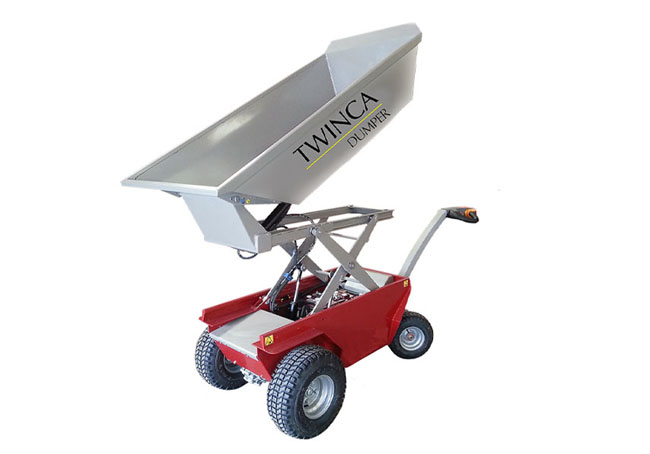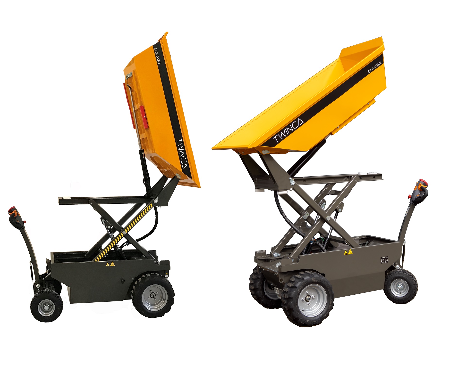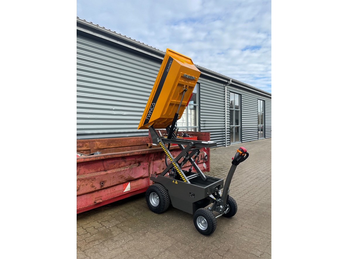 El-dreven dumper/motortrillebøre, som er meget effektiv og nem at betjene. Den kører på batteri hvilket gør den meget lydsvag og derfor optimal til arbejdsområder hvor man ønsker et lavt lydniveau. Den er også ideel til brug i områder hvor der ikke må udledes udstødningsgasser. Dumperen er udstyret med sakselift, så den kan læsse af i en container, eller på en trailer.