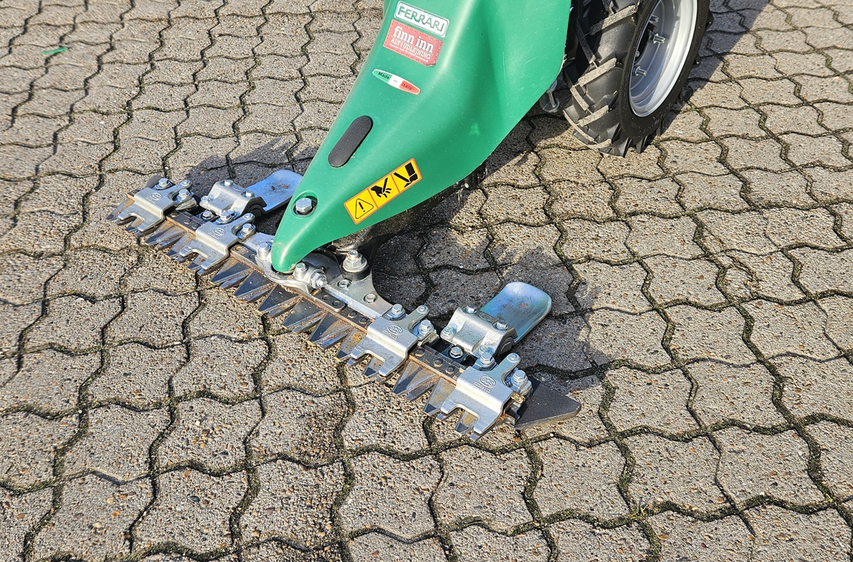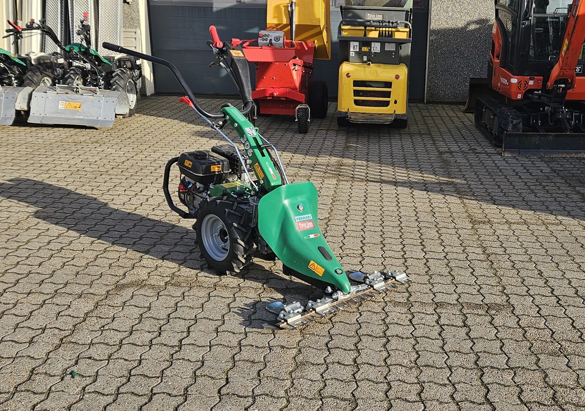 Laser fingerklipper monteret på en 2-hjulet traktor, perfekt til klipning af fint eller groft græs, som typisk findes på bakkesider, græsplæner eller marklignende områder. Fingerklippere er særligt velegnede til at klippe bio diversitets arealer som f.eks. blomsterenge, og er den mekaniske klippe metode der klipper mest skånsomt af hensyn til dyrelivet. fingerklipperen er udstyret med slæbefødder for klippe højde justering.