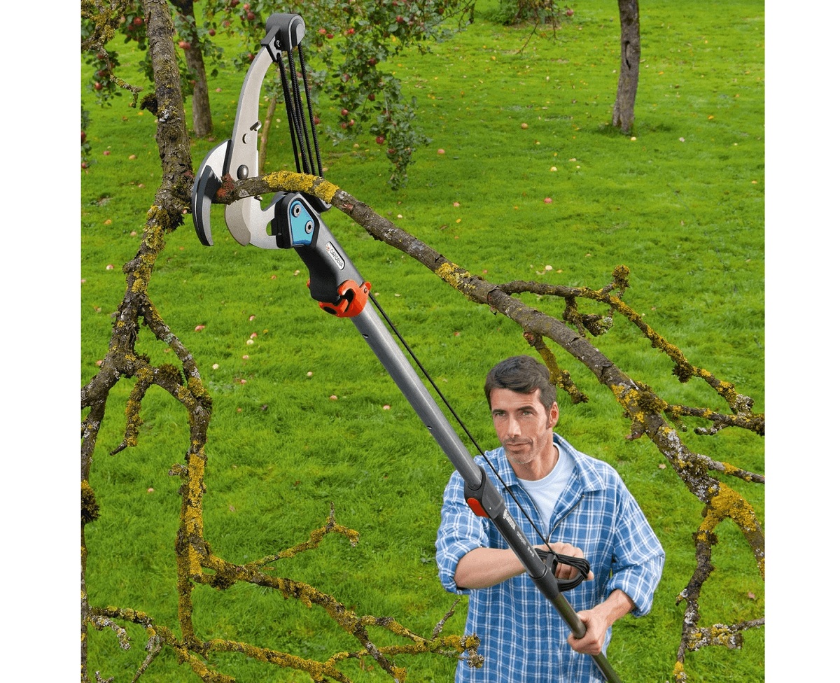 Grensaksen gør det let at klippe grene fra jorden, og den integrerede dobbelthåndtagsudveksling og 5-trins-udvekslingen gør, at der ikke skal bruges mange kræfter.