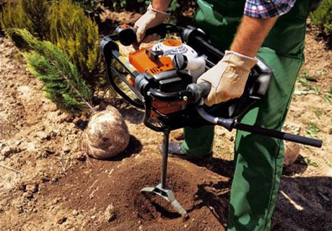 Benzindrevet jordbor, som kan bruges til at lave huller til eksempelvis stolper. fås med forskellige størrelser bor.