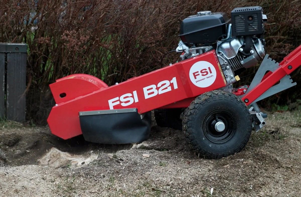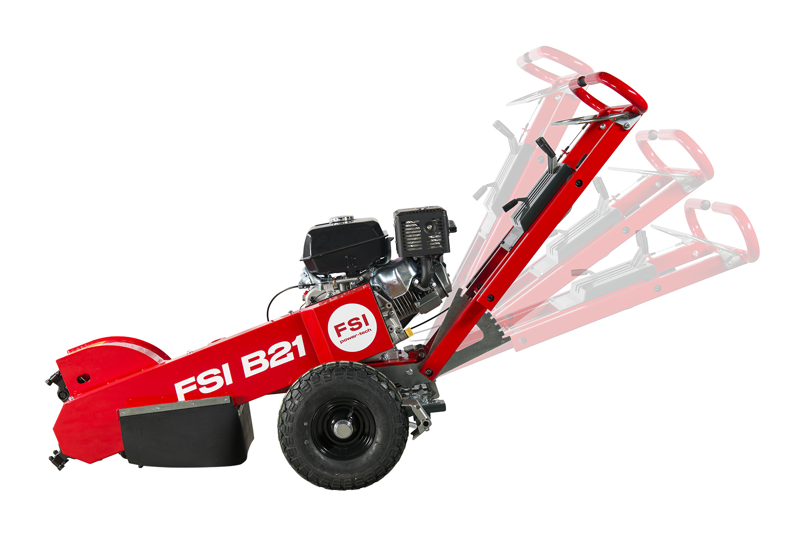 Letkørende og kompakt stubfræser, som er meget manøvrevenlig på grund af dens lave vægt. Drejeleddet mellem stubfræseren og hjulakslen sikrer en let og smidig fræsning, selv under vanskelige forhold. Hjulene kan bremses individuelt for optimal manøvrering selvom spånerne ligger i vejen eller ved forcering af trapper og andre mindre forhindringer. Stubfræseren har også FSI's nye "Hill-hold" system, hvilket sørger for at bremse stubfræseren når du kører den op af ramper, trapper eller i terræn. Når hill-hold systemet er aktiveret, kan du uden problemer trække stubfræseren baglæns, uden risiko for at den triller forlæns.