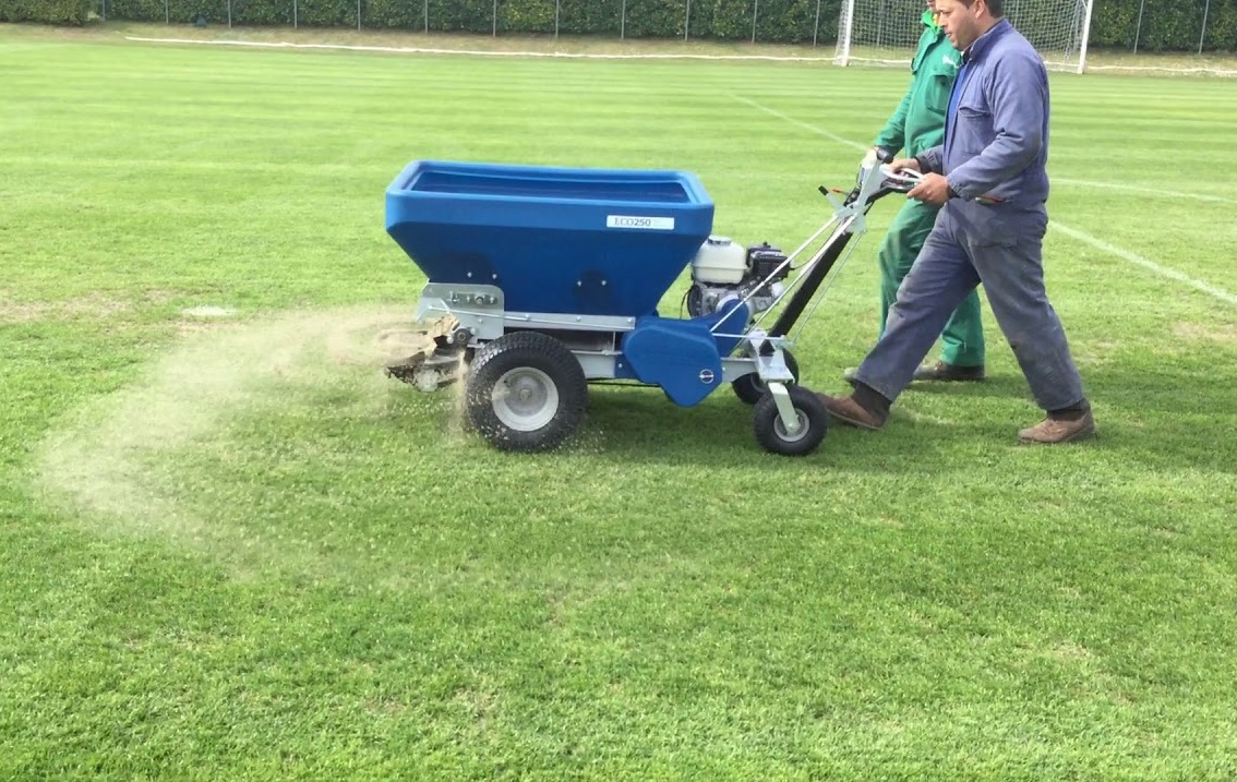 Lej en professionel topdresser, en ideel maskine til at spredning af topdressing, sand, gummigranulat m.m.