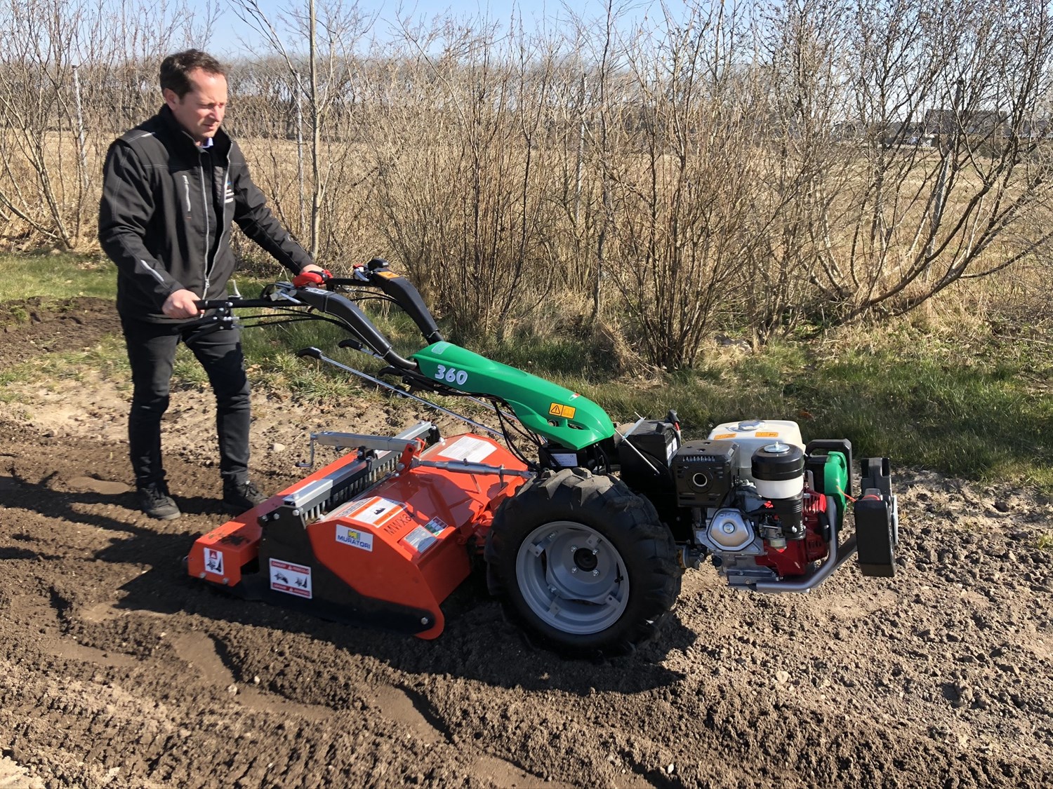 Efterhængt stennedlægningsfræser, med 4 funktioner i en maskine, som er fræsning, stennedlægning, jævning og jordpakning på samme tid. Sten osv. bliver lagt ned under jorden, så der efterfølgende er klar til såning af græs.