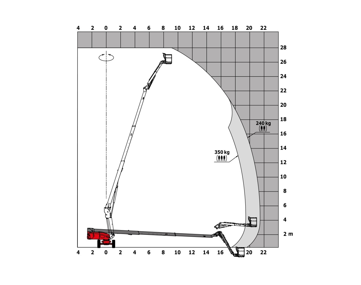 Stor diesel drevet bomlift, med meget lang rækkevidde, på helt op til 21,45 meter. Den har også en arbejdshøjde på 27,75 meter, og så har den 4-hjulstræk hvilket gør den meget velegnet til opgaver i svært tilgængeligt terræn.