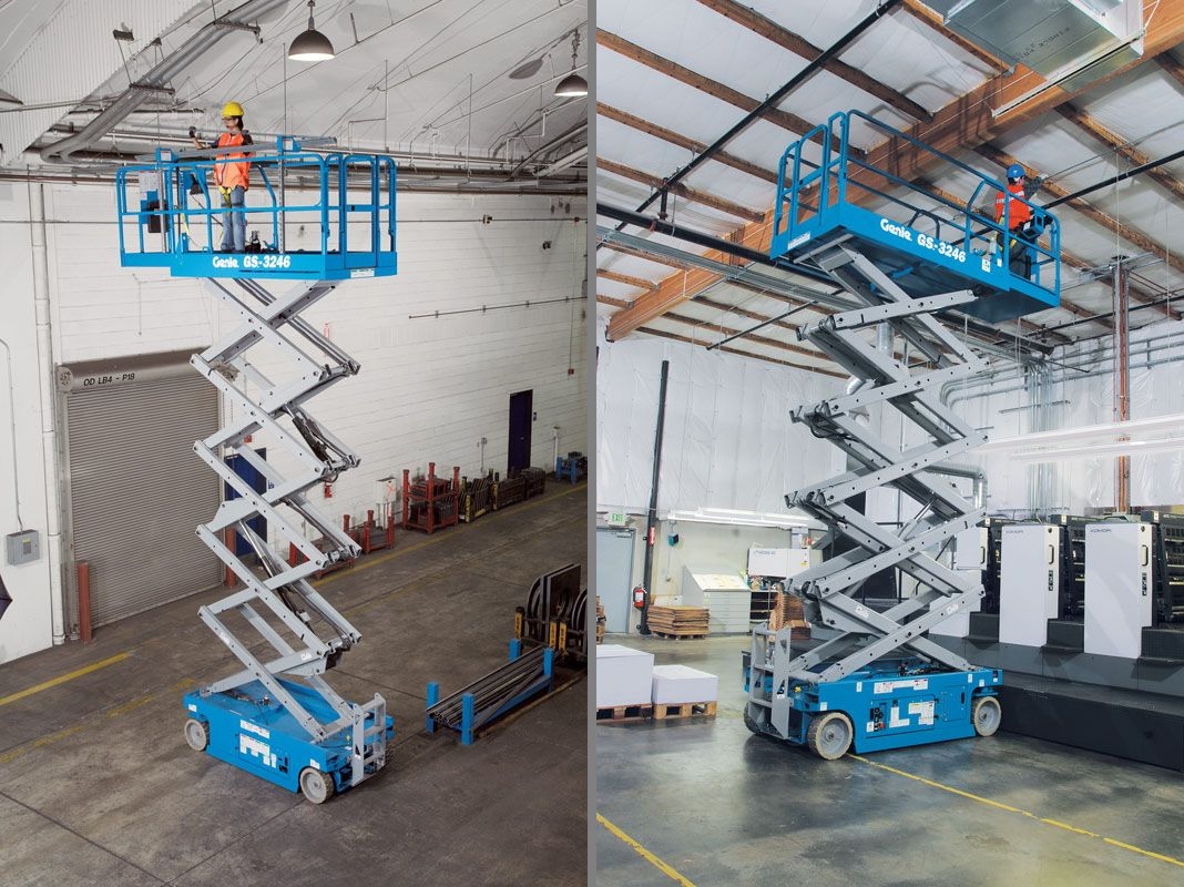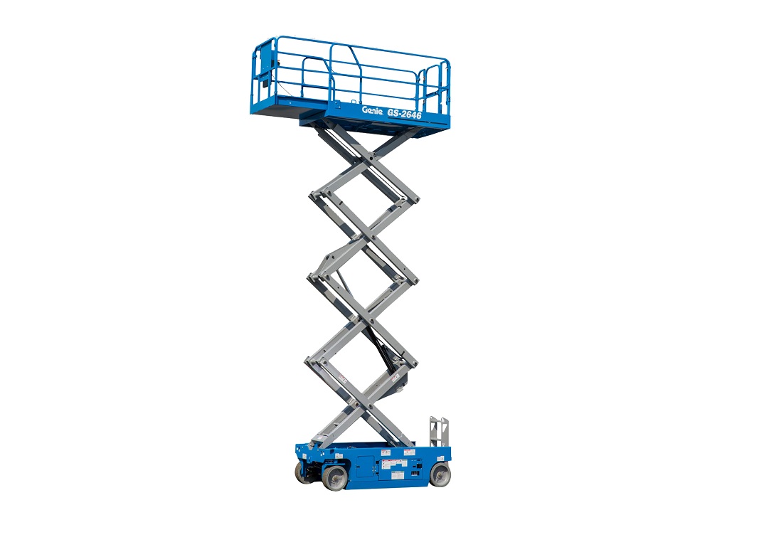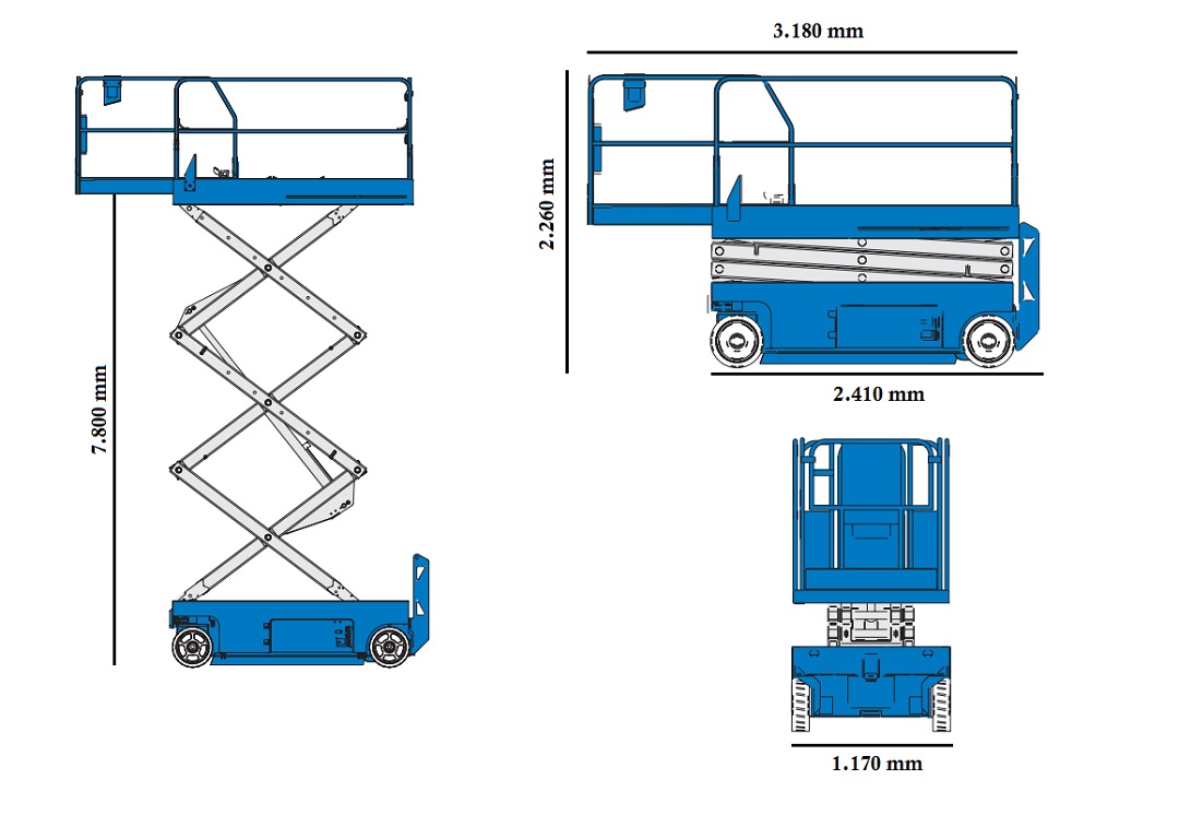 Større saxlift med stor arbejdsplatform, som både kan bruges til inden- og udendørs arbejde. Dette er vores bredde 10 meter saxlift, hvilket gør at den får en større arbejdsplatform, og den kan også løfte op til 454 kg.