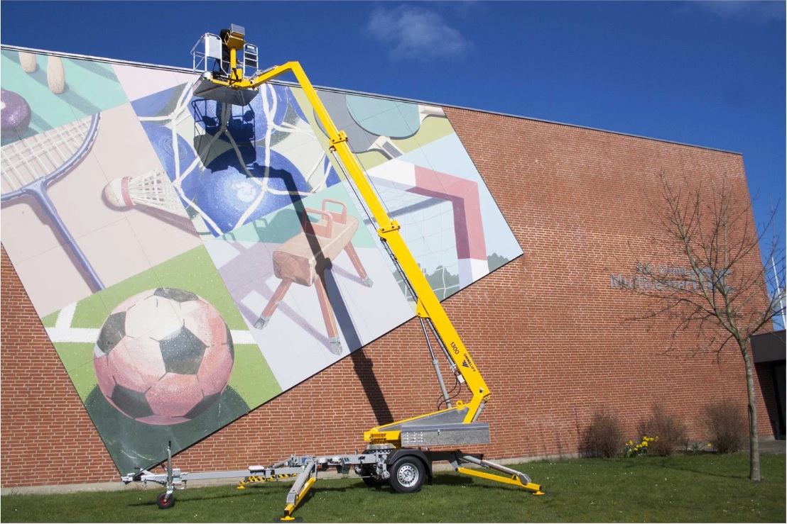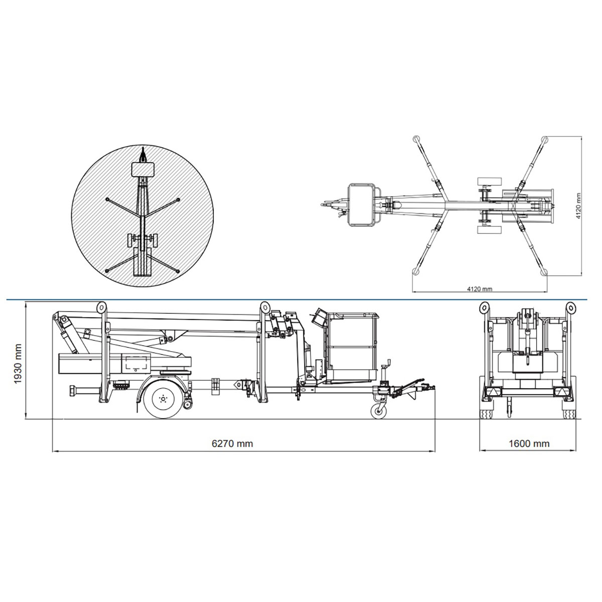Smart og kompakt batteridrevet trailerlift, med hydraulisk fremdrift, hvilket betyder at den kan flyttes rundt på arbejdspladsen ved egen kraft. Den har drejbar kurv, og kan indeholde op til 2 mand.