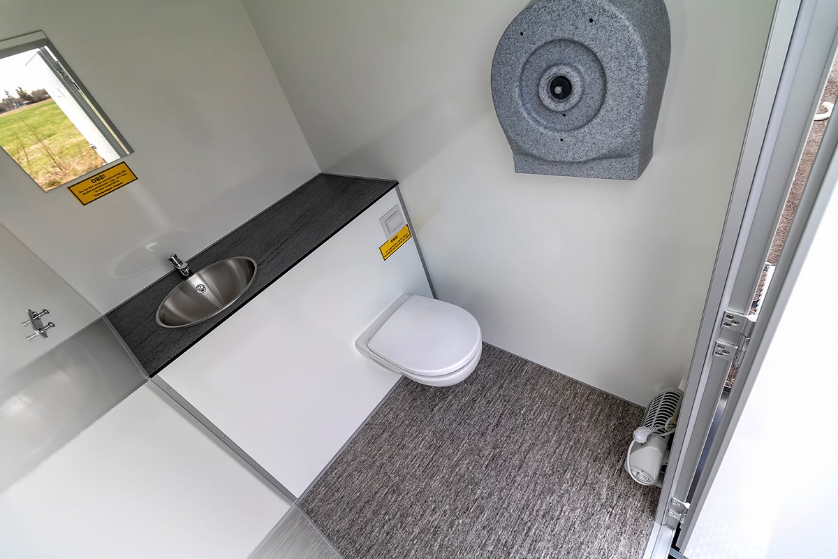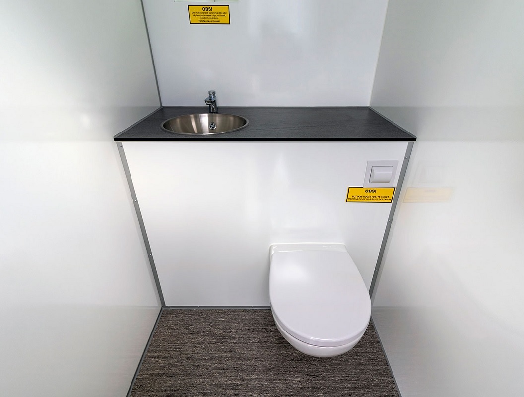 Mobil toiletvogn med 2 toiletter i en smart og kompakt vogn som kun måler 185 x 240 cm. Ideel hvis du skal bruge 2 ekstra toiletter på byggepladsen eller til dine gæster når du holder fest.